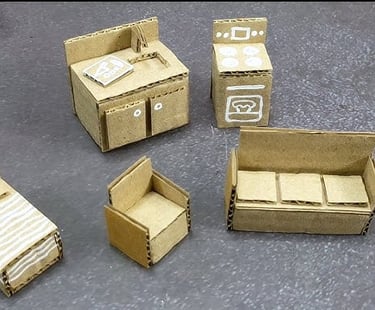 A creative, hands-on workshop where kids design and build miniature furniture from cardboard, developing problem-solving, design skills, creativity, and teamwork.