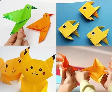 A hands-on origami workshop where kids fold paper to create intricate designs, developing creativity, focus, patience, and spatial awareness.
